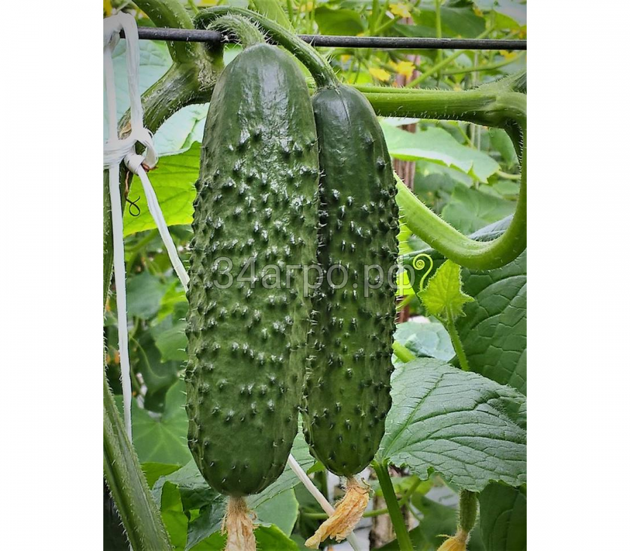 Плоды темнозеленые с блеском, крупнобугорчатые по всей длине, однородные по форме в течение всего периода вегетации, не “бочкуются” при перерастании, держит цветочек. Характерна высокая послеуборочная сохранность плодов, которая позволяет им превосходно выдерживать транспортировку на дальние расстояния.
